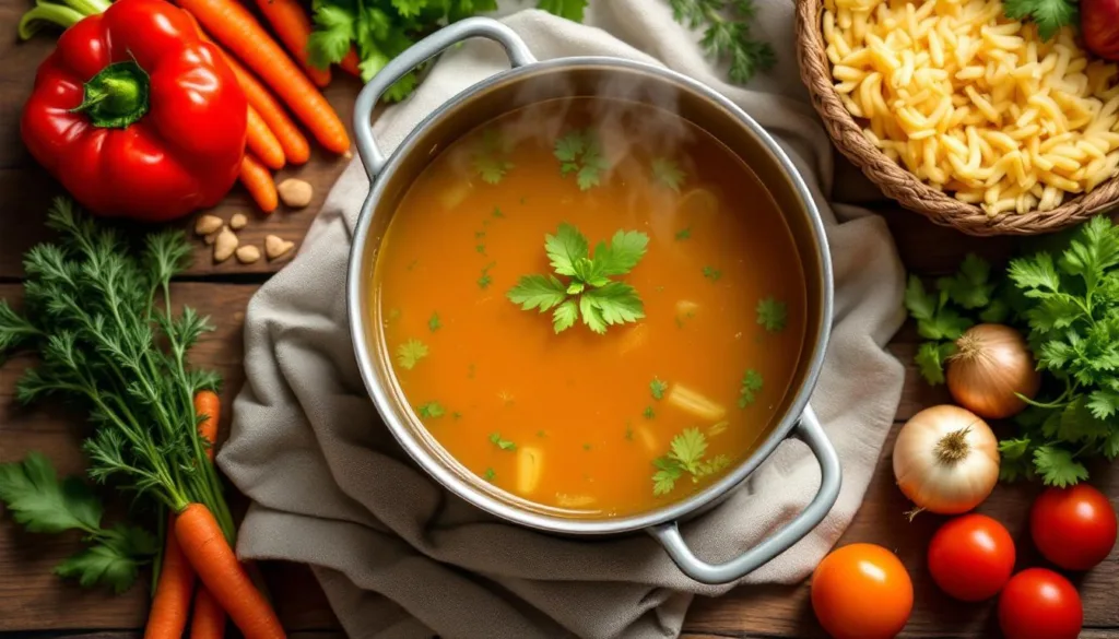 - Przesmażanie warzyw – sprawia, że ich smaki wydobywają się w pełni, a bulion zyskuje na intensywności.