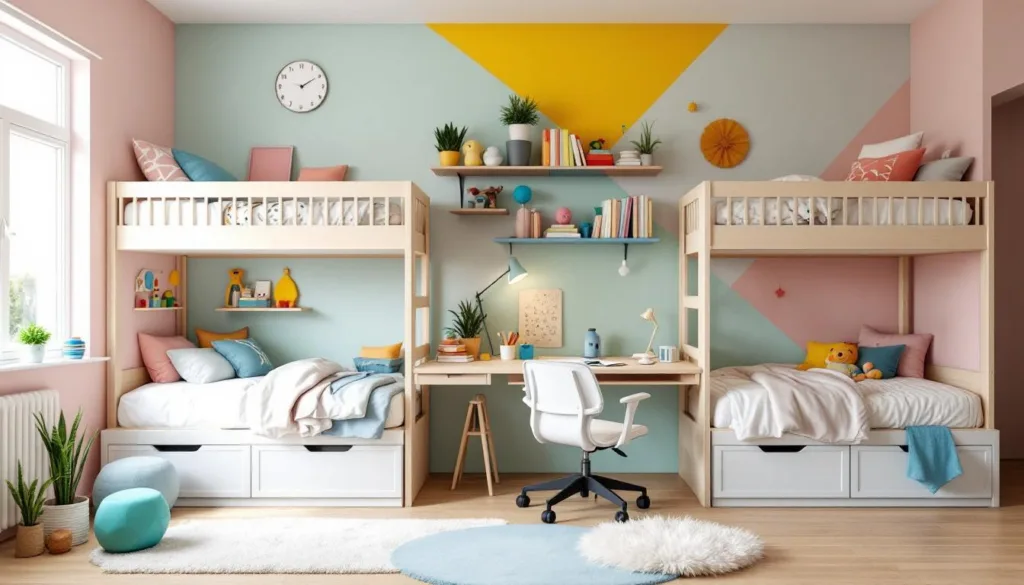 projektant wnętrz radzi, jak funkcjonalnie i estetycznie urządzić pokój o powierzchni 20 m² dla dwójki dzieci, maksymalizując przestrzeń i wygodę.